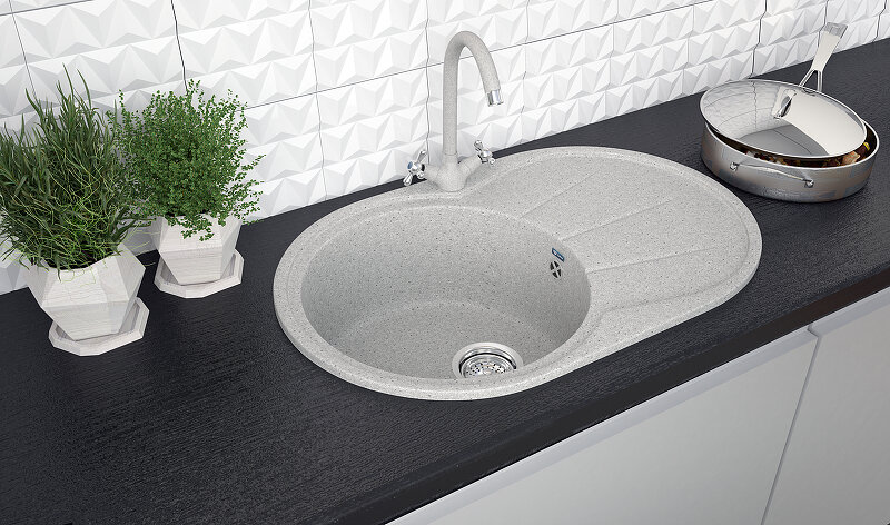 Мойка кухонная мраморная ULGRAN U-503 750*480мм овальная (310) серый/Раковина для кухни