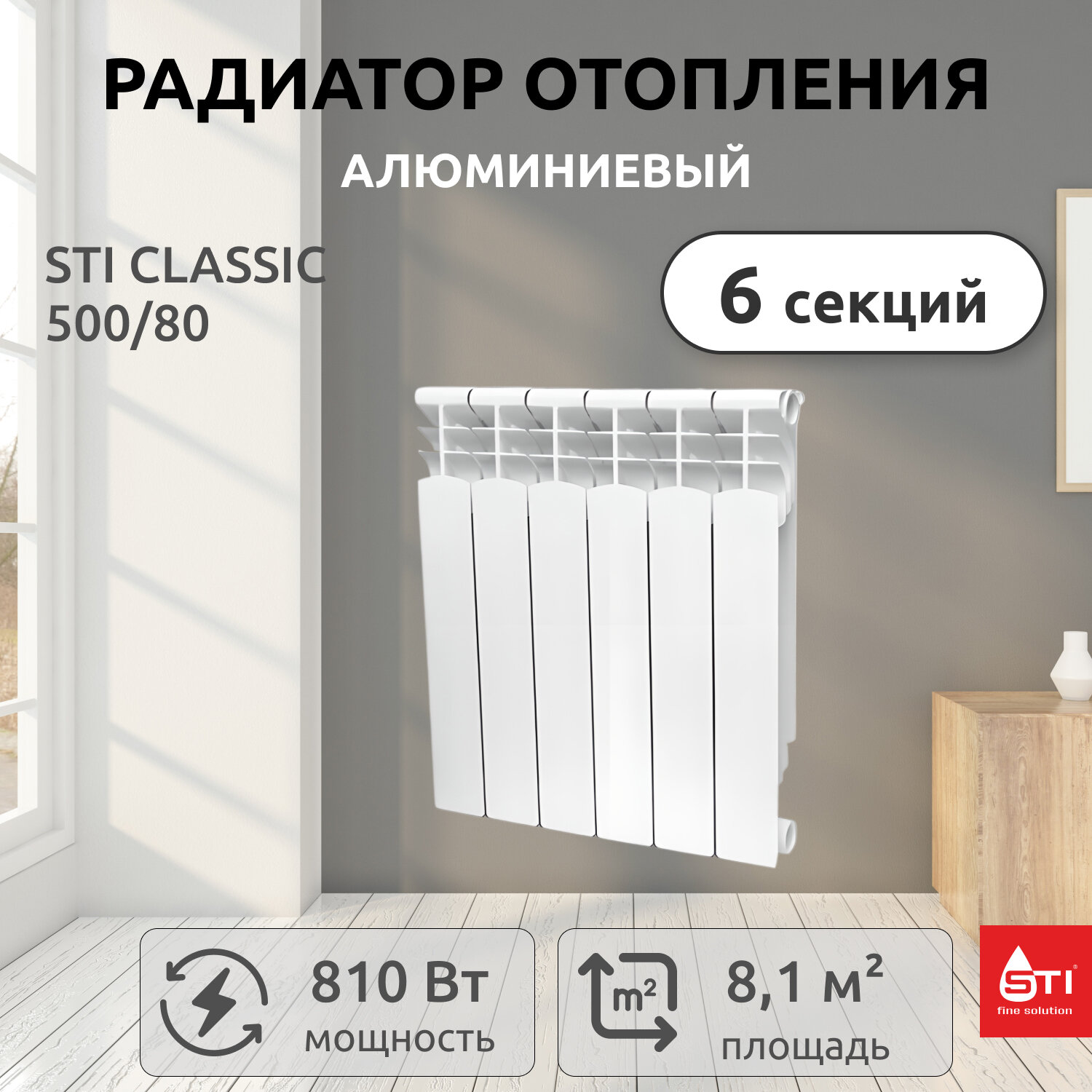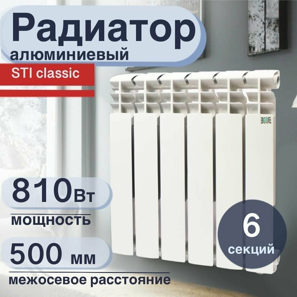 Радиатор секционный STI Classic/AL 500, кол-во секций: 6, 8.1 м2, 1152 Вт, 480 мм.алюминиевый