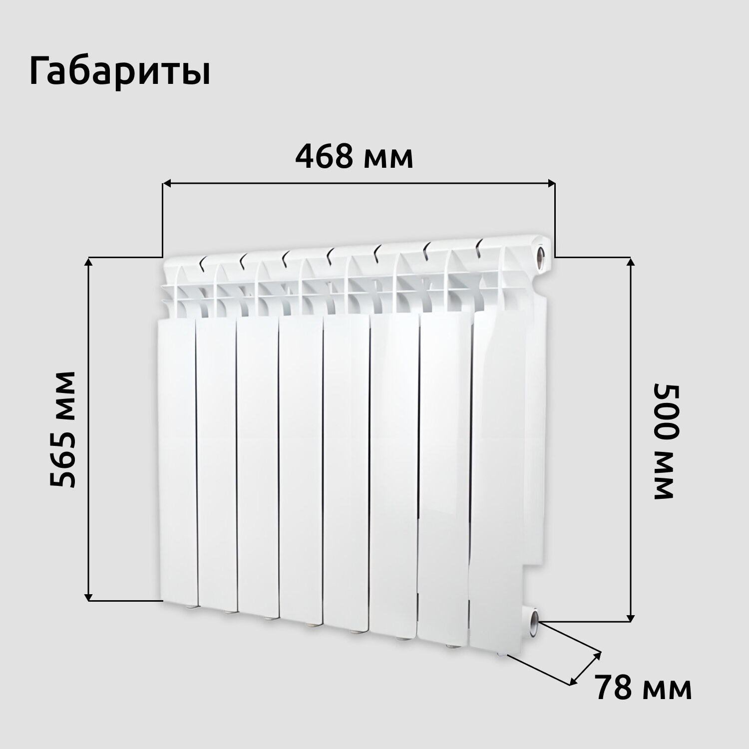 Радиатор секционный STI AL 500, кол-во секций: 8, 15.36 м2, 1536 Вт, 640 мм.