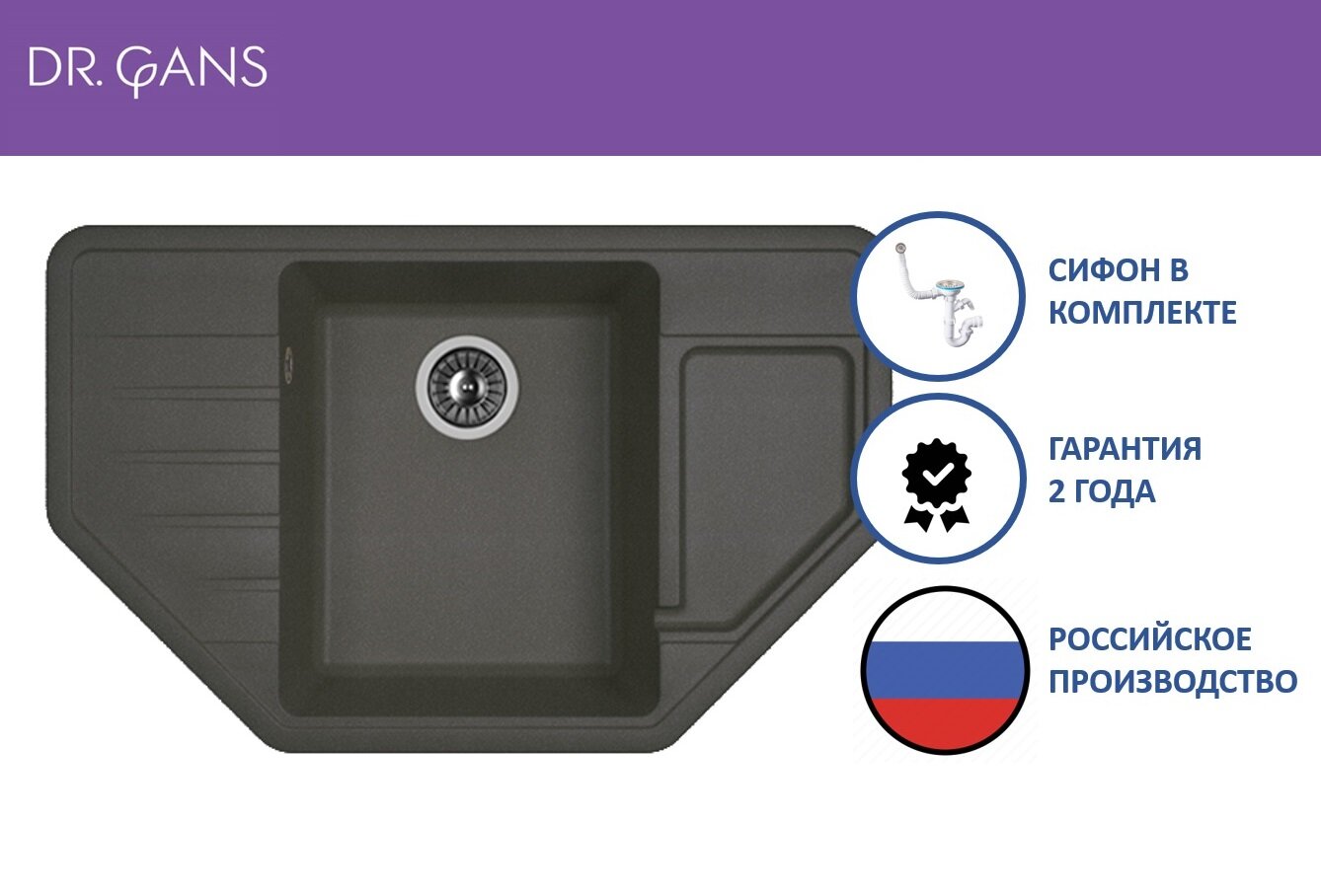 Мойка кухонная угловая Dr. Gans Рио Чёрный (25.080.C0800.407)
