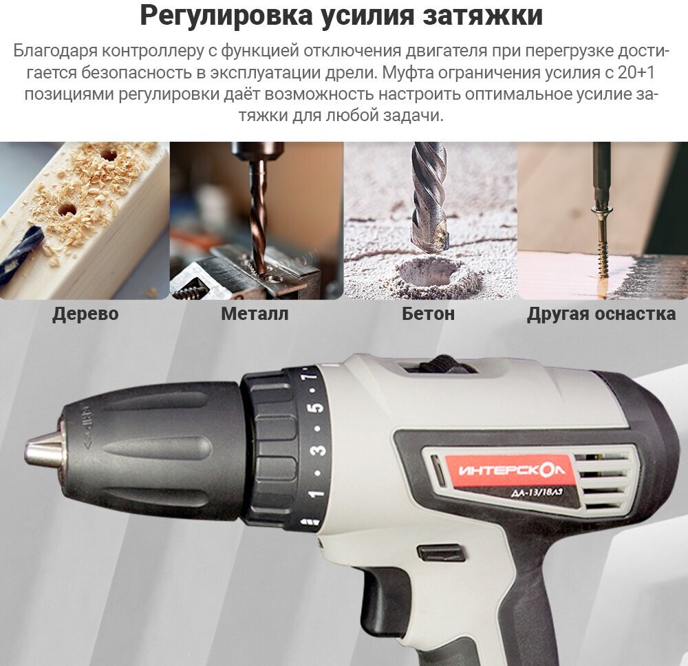 СохранитьДрель аккумуляторная ИНТЕРСКОЛ ДА-13/18Л3 (Li-Ion) интересное: