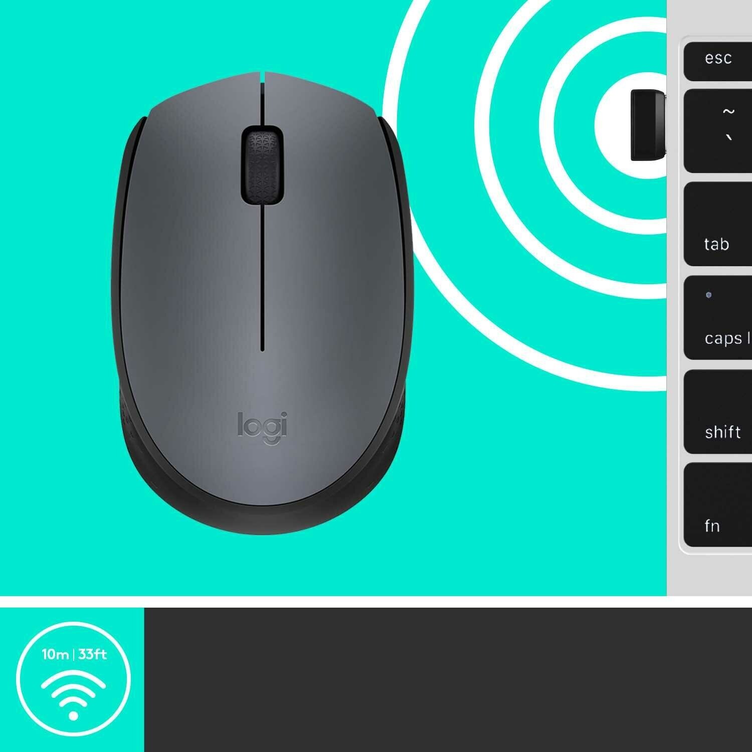 Мышь оптическая беспроводная Logitech M170, USB, серая и, черная (910-004642)