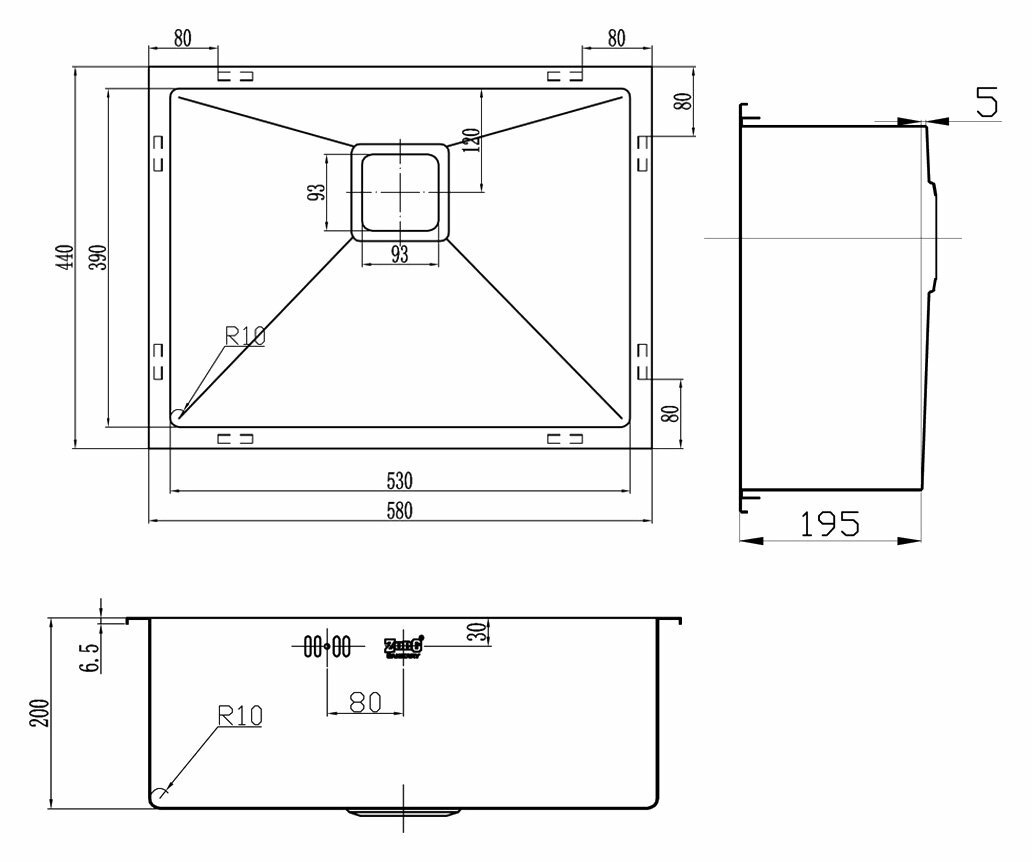 Мойка кухонная ZorG SZR-5844 BRONZE одна чаша, бронза, толщина 1,5 мм, премиум