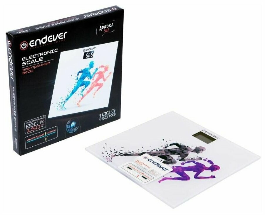 Купить Весы электронн.напольн. Endever Aurora-562 рисунок Спортсмены, материал закаленное стекло, до 150кг