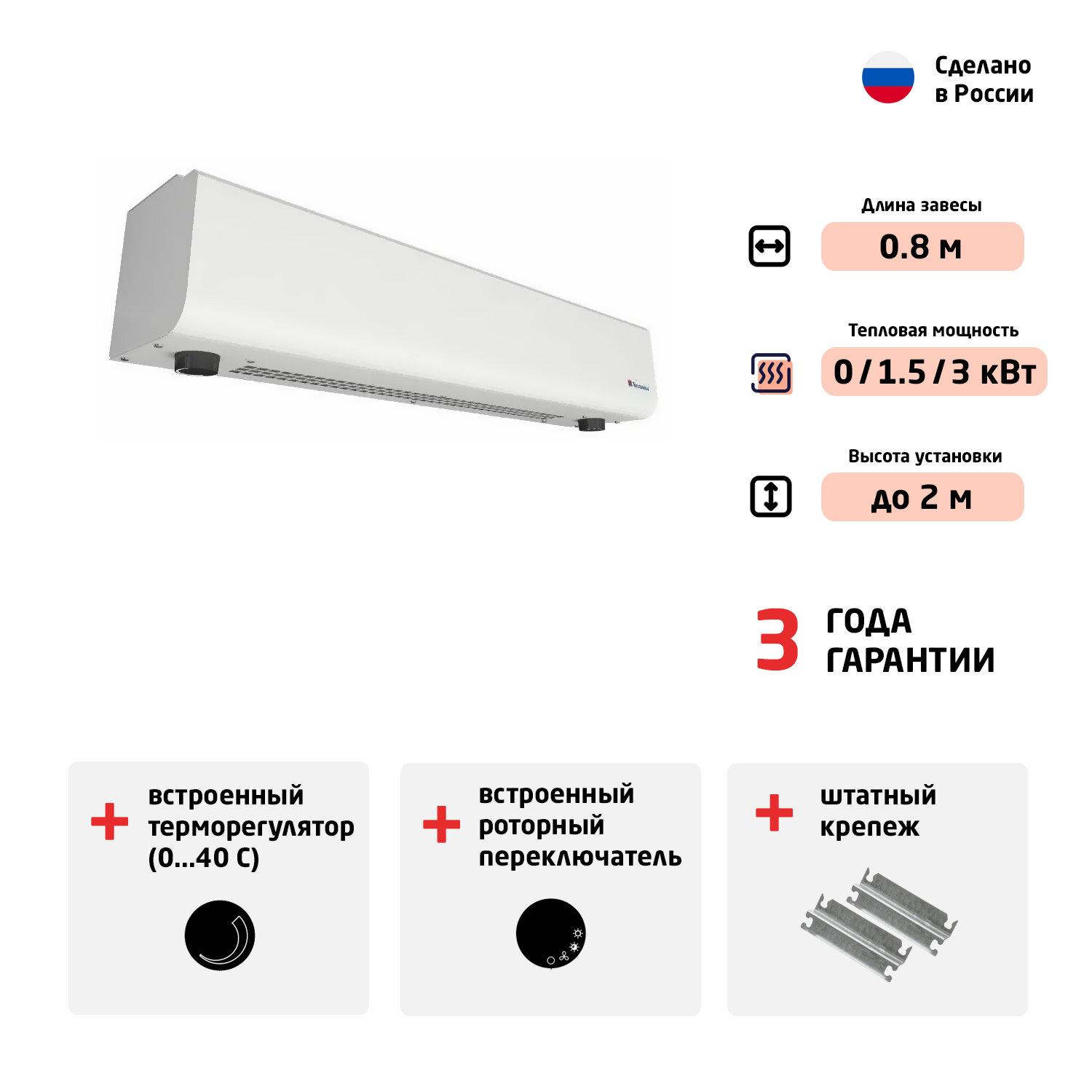 | Максимальная высота установки тепловой завесы | 2 м |
