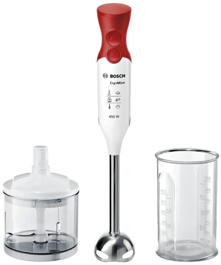Блендер Bosch MSM64110, погружной, белый/красный