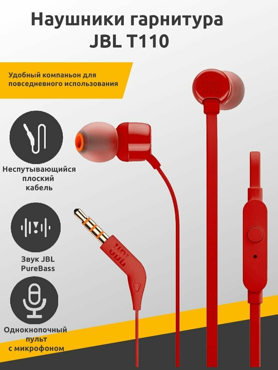 Jbl Наушники TUNE110 Lifestyle 1.2м красный проводные в ушной раковине