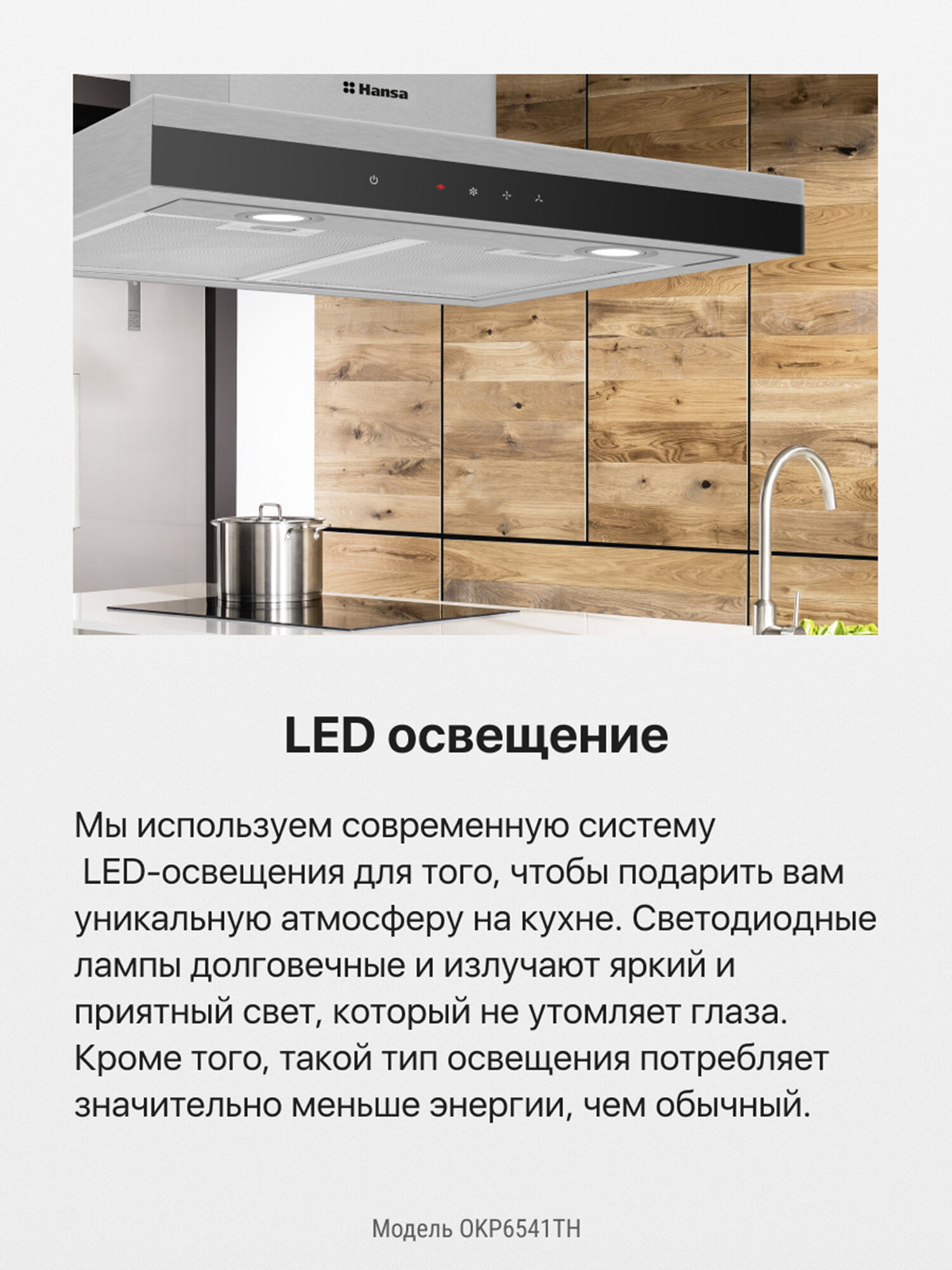 OKP6541TH Вытяжка каминная Hansa OKP6541TH серебристый/черный интересное: