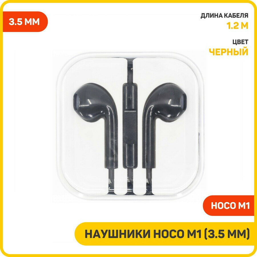 Наушники внутриканальные HOCO M1, микрофон, кнопка ответа, регулятор громкости, кабель 1.2м, цвет: чёрный