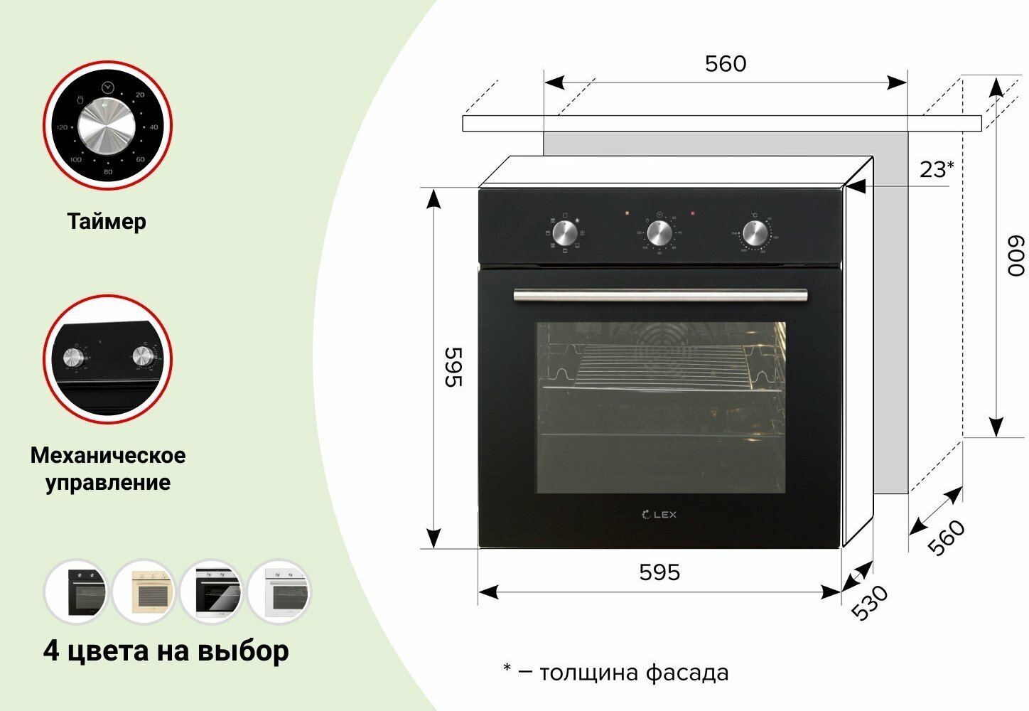 Духовой шкаф LEX EDM 070 BL цвет: черный, 7 режимов