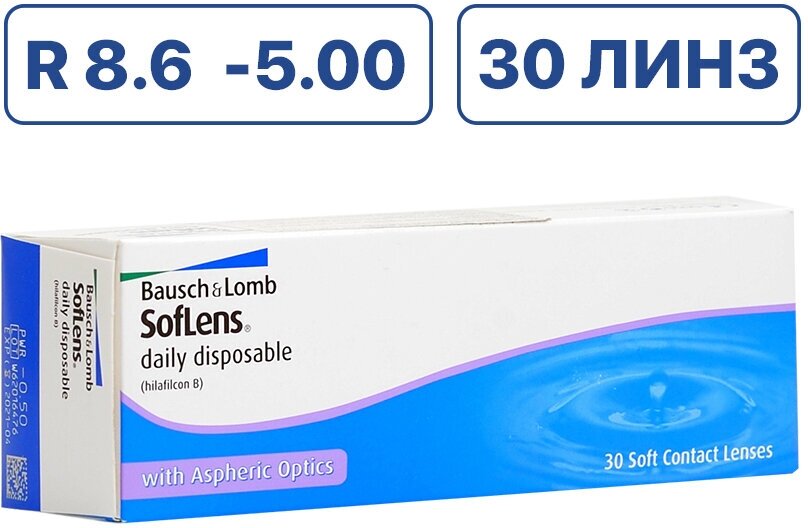 Контактные линзы Bausch & Lomb Soflens Daily Disposable (30 линз) -5.00 R 8.6