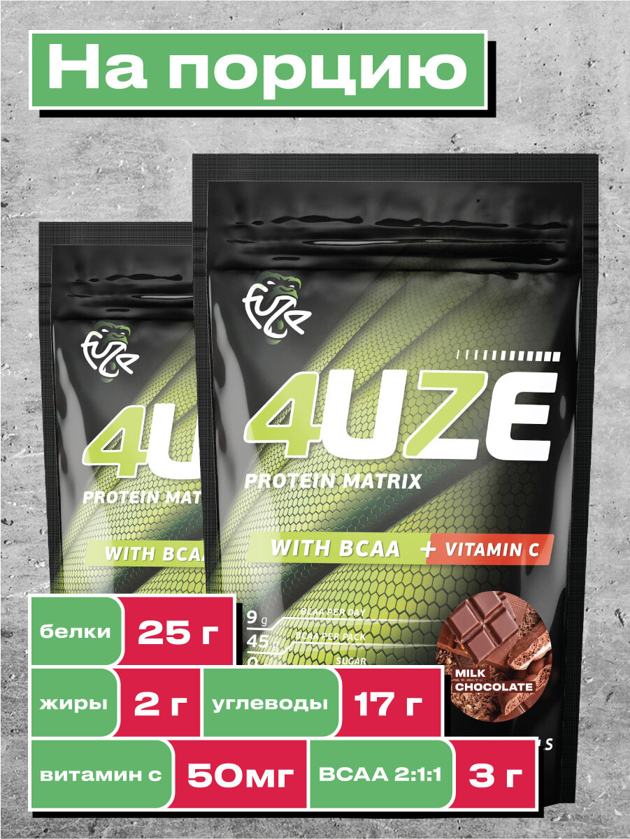 4UZE Мультикомпонентный протеин Фьюз 47% + BCAA , вкус «Молочный шоколад», 750 гр, 4UZE