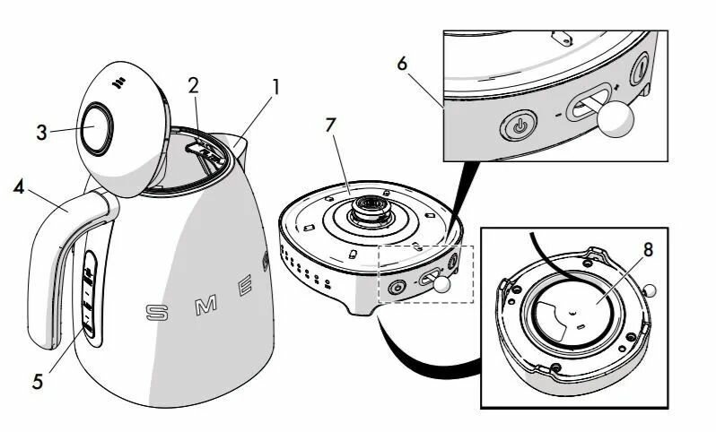 Чайник электрический с регулируемой температурой, Белый Smeg KLF04WHEU