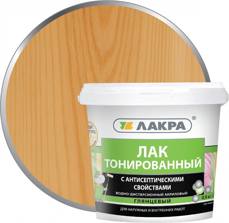 Лак Лакра Тонированный с антисептическими свойствами бесцветный, глянцевая, 0.9 кг, 0.9 л