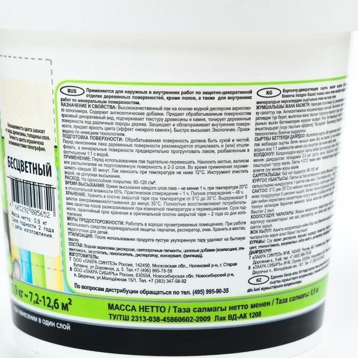 Лак ВД Лакра тонированный Бесцветный 0,9кг интересное: