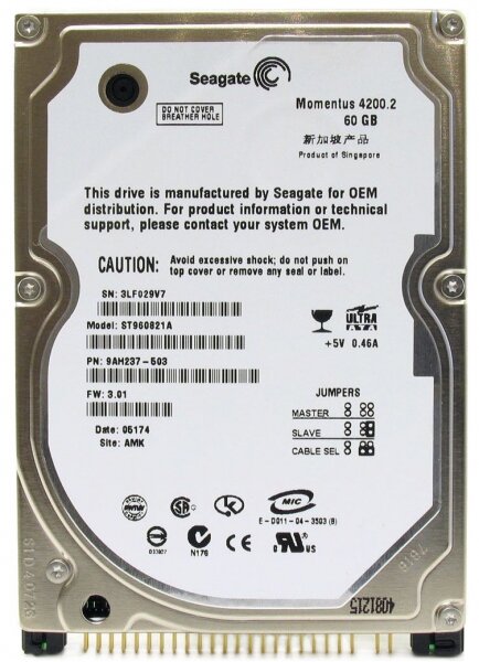 Жесткий диск Seagate ST960821A 60Gb 4200 IDE 2,5" HDD интересное: