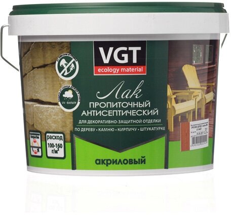 Лак пропиточный с антисептиком для дерева и камня Vgt , акриловый, 2,2 кг, сосна