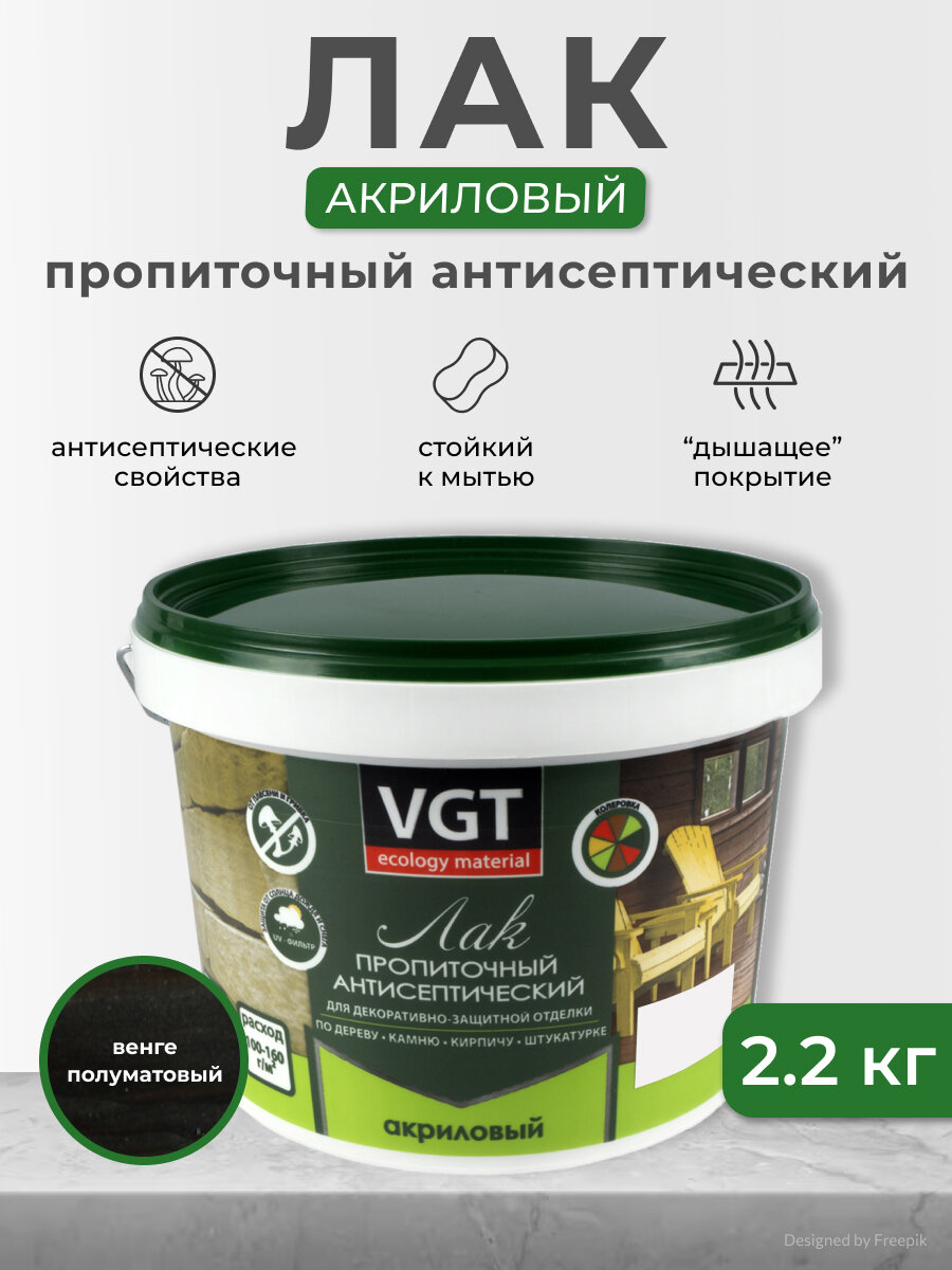 Лак VGT акриловый пропиточный с антисептиком, венге, 2,2 кг