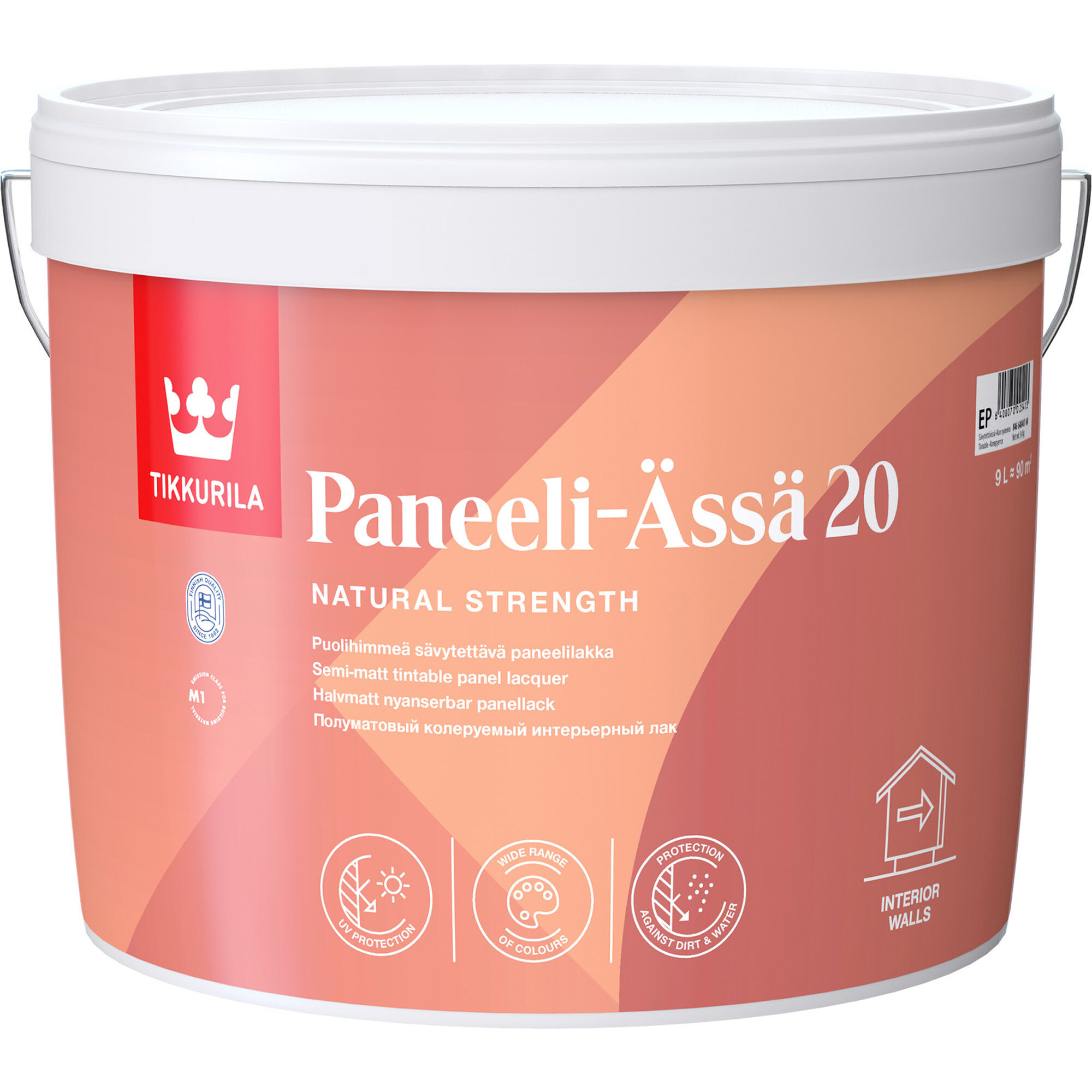 Tikkurila Paneeli-Ässä 20 Интерьерный полуматовый лак на водной основе для дерева, панелей, бетона и кирпича, 0,9 л