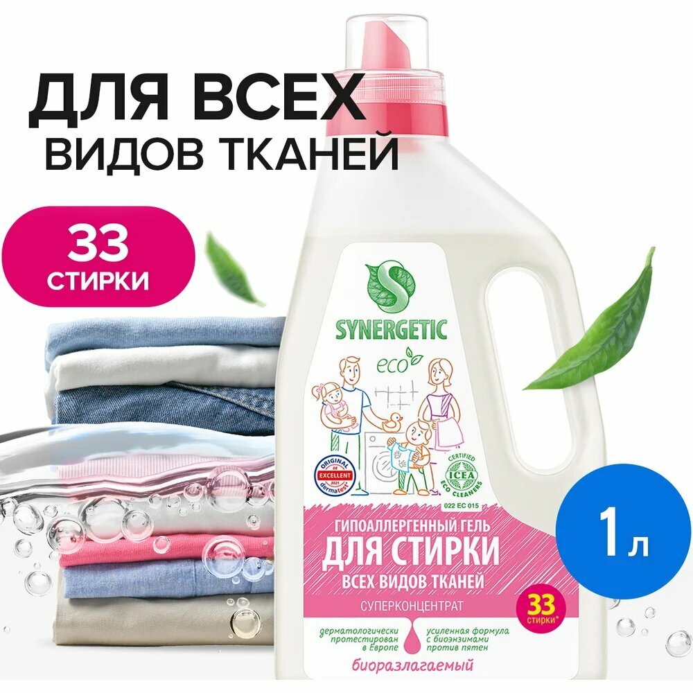 Купить Гель для стирки Synergetic, универсальный, гиппоаллергенный, биоразлагаемый, 1л