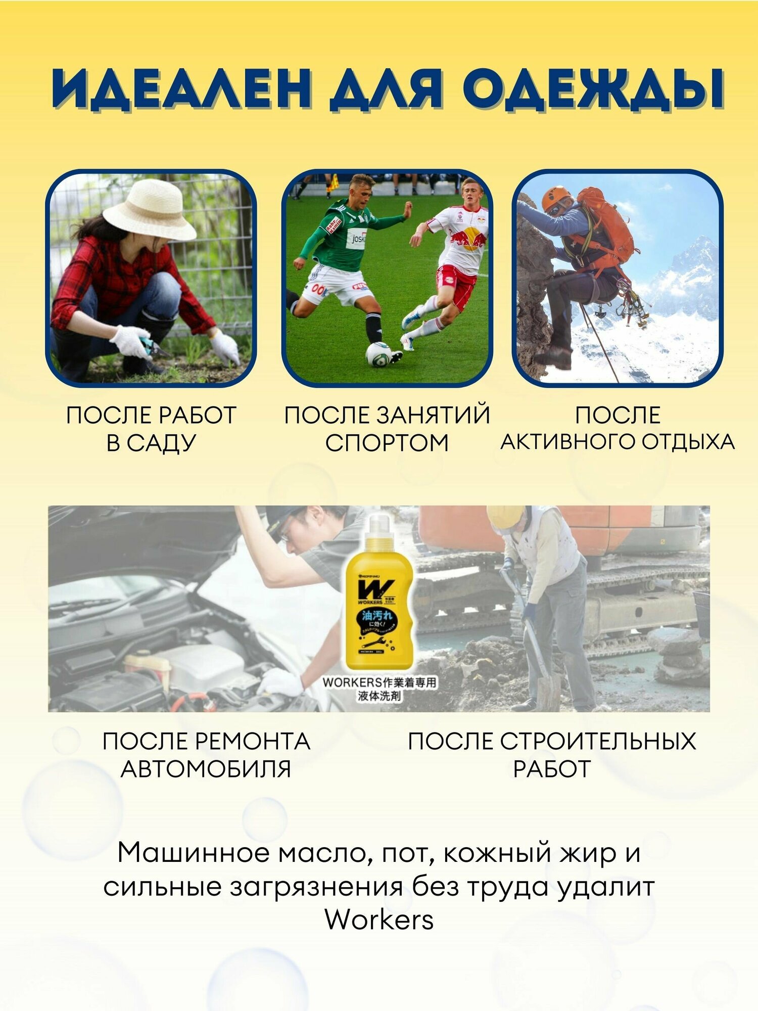 Жидкое средство "Workers" для стирки экипировки для экстремальных видов спорта и одежды специалистов - механиков, поваров, строителей, спортсменов, 800 мл.