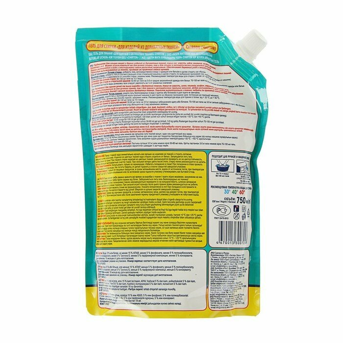 СМС гель чиртон 750мл д/деликатной стирки концентрат дой-пак