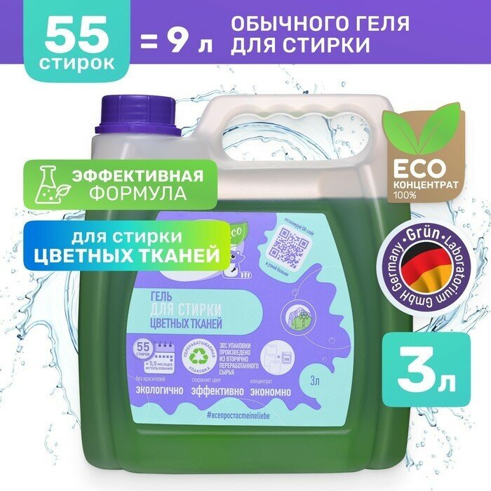 Гель-концентрат биоразлагаемый для стирки цветных тканей Эко 3 л