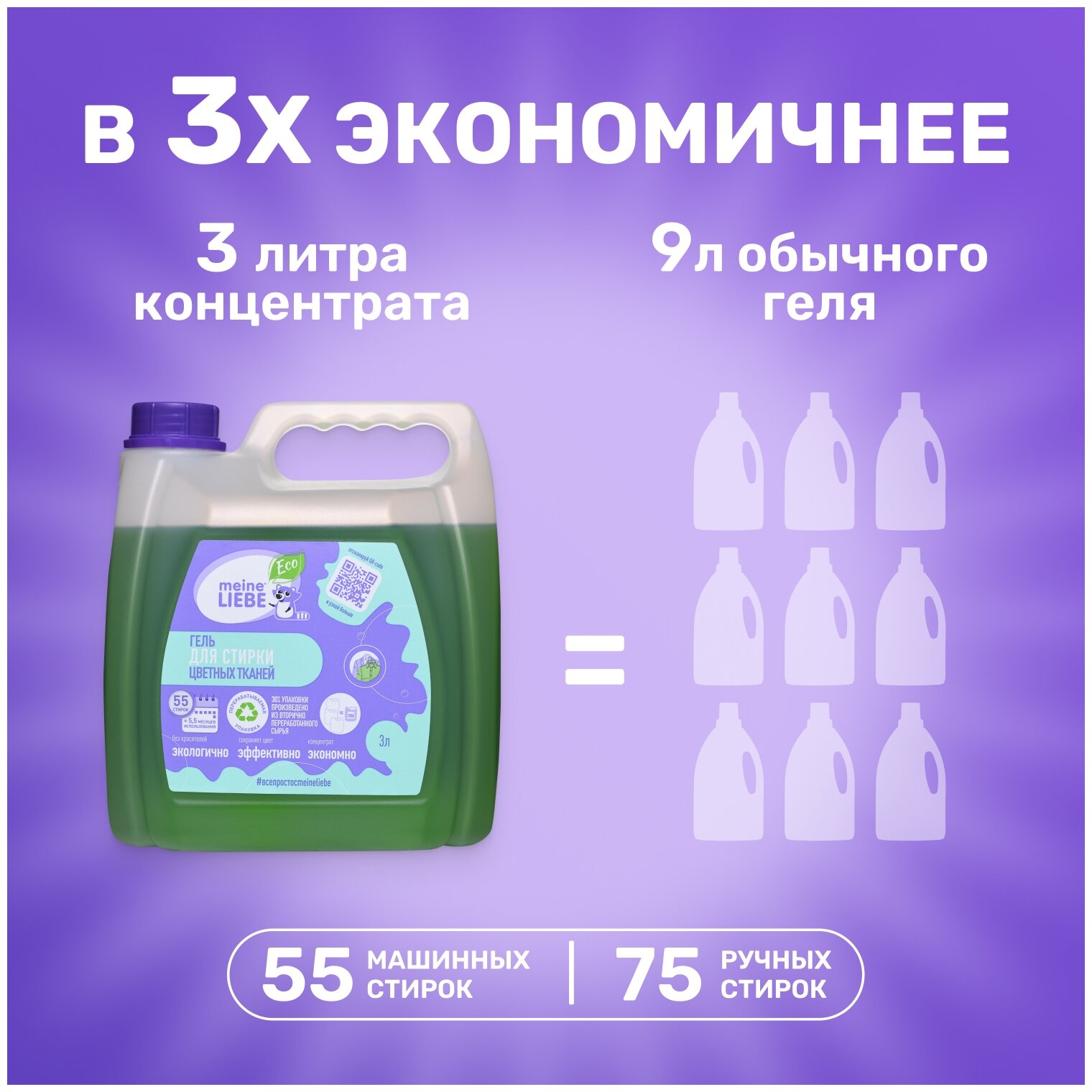 Гель для стирки цветных тканей, Meine Liebe, концентрат, 3 л