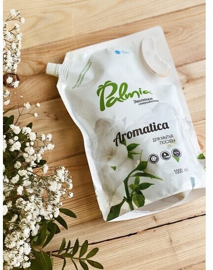 Гель для мытья посуды Palmia "Aromatica" с ароматом зеленого чая и жасмина, 1 л, дой-пак