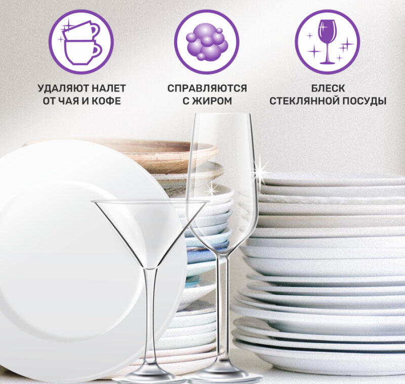 | Минусы: | Вся посуда в разводах после этих таблеток |