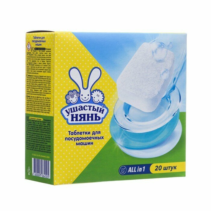 Таблетки для посудомоечной машины Ушастый Нянь All in 1 таблетки, 20 шт., коробка
