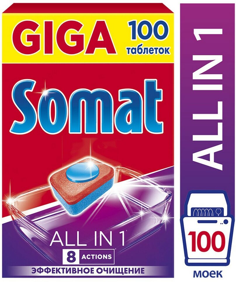 Таблетки для посудомоечной машины Somat All in 1, 100 шт., коробка