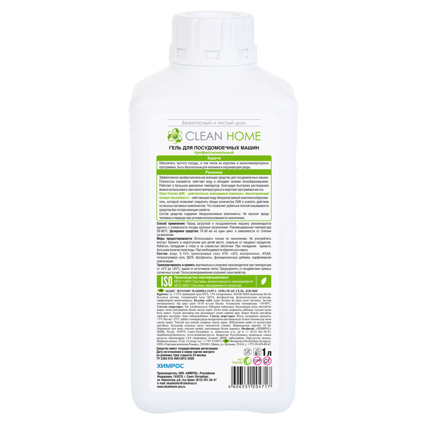 Гель для посудомоечных машин CLEAN HOME профессиональный 1л 4606531204717