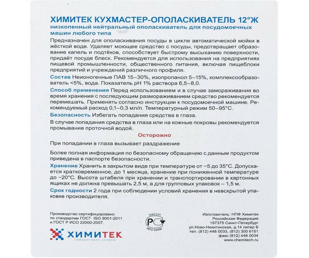 Профессиональная химия химитек кухмастер ополаскиватель 12Ж 5л,д/пос.машин