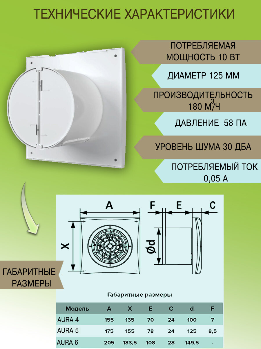 AURA 5C MR вентилятор вытяжной с таймером, c обратным клапаном на шарикоподшипниках D125