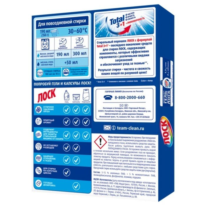 Стиральный порошок Лоск, 4.05 кг, автомат, для цветного белья, Color