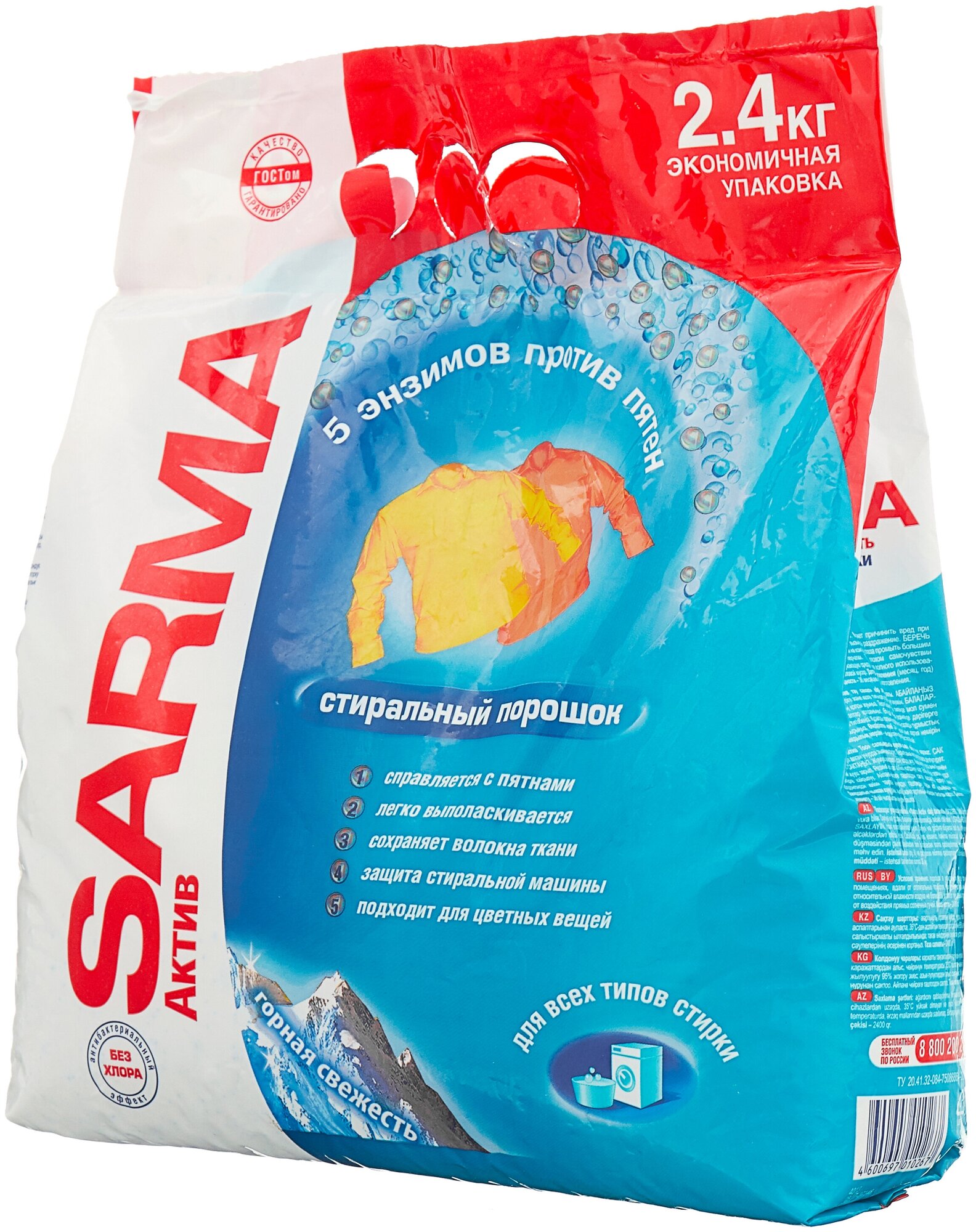 SARMA Стиральный порошок Актив Горная свежесть Универсальное, 800 г /