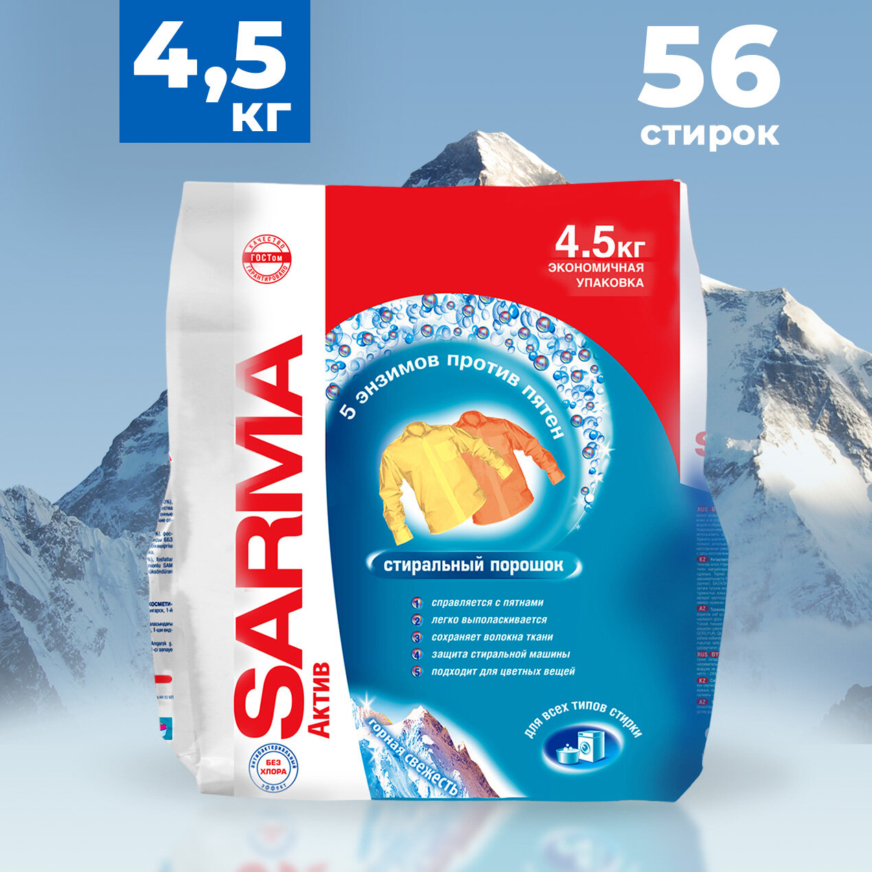 Стиральный порошок Sarma Актив «Горная свежесть», универсальный, 4,5 кг