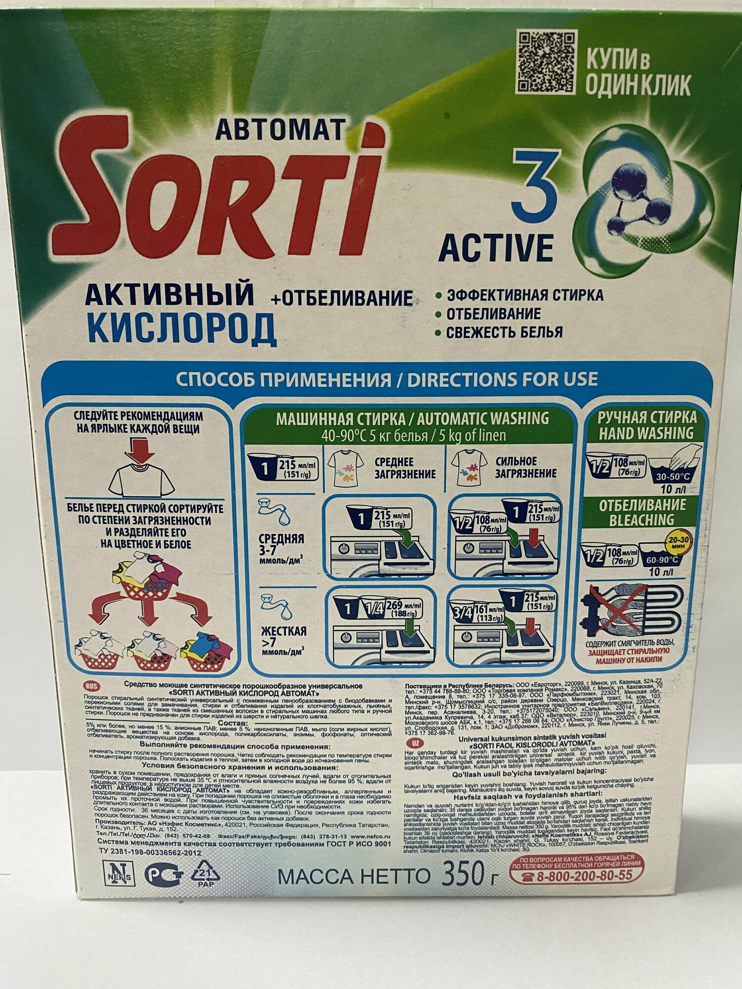 Стиральный порошок Sorti Активный кислород (автомат), 0.35 кг