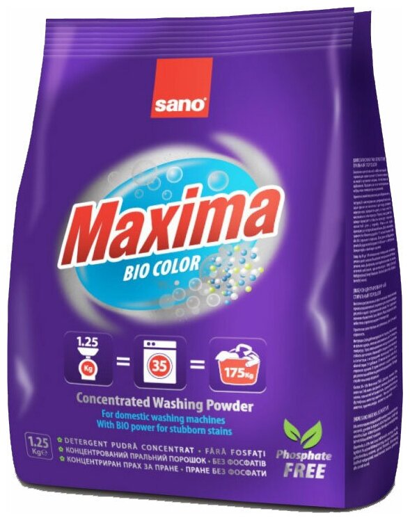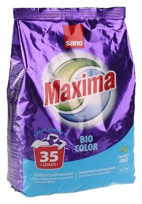 Купить SANO Maxima Bio Color концентрированный стиральный порошок без фосфатов для стирки цветного белья 1.25 кг на 35 стирок
