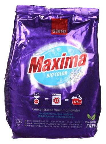 Ниже Вы можете прочитать отзывы на SANO Maxima Bio Color концентрированный стиральный порошок без фосфатов для стирки цветного белья 1.25 кг на 35 стирок, ознакомится с подробными характеристиками, посмотреть интересные обзоры и фотографии на SANO Maxima Bio Color концентрированный стиральный порошок без фосфатов для стирки цветного белья 1.25 кг на 35 стирок.