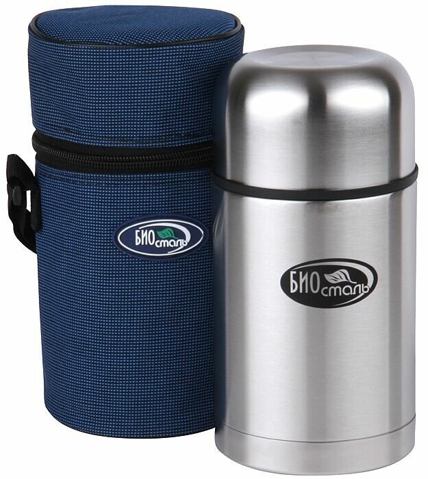 Термос для еды Biostal (1 литр) в чехле, стальной