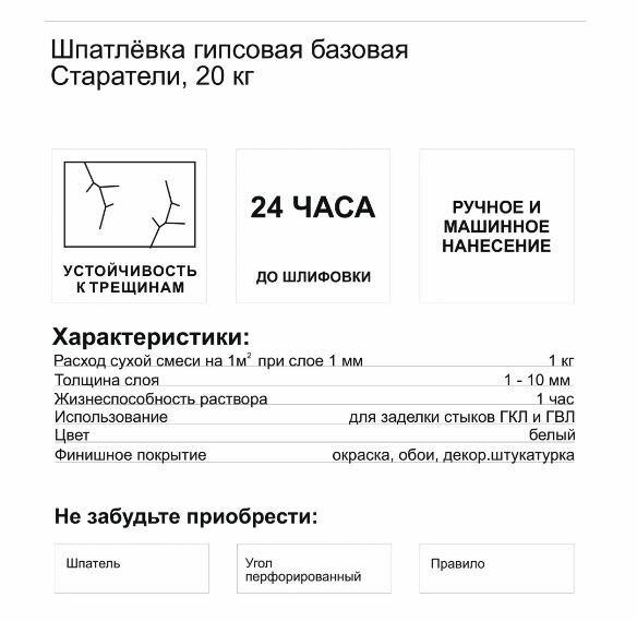 СохранитьСтаратели Базовая шпатлевка гипсовая (20кг) / старатели Базовая шпаклевка гипсовая белая (20кг) интересное: