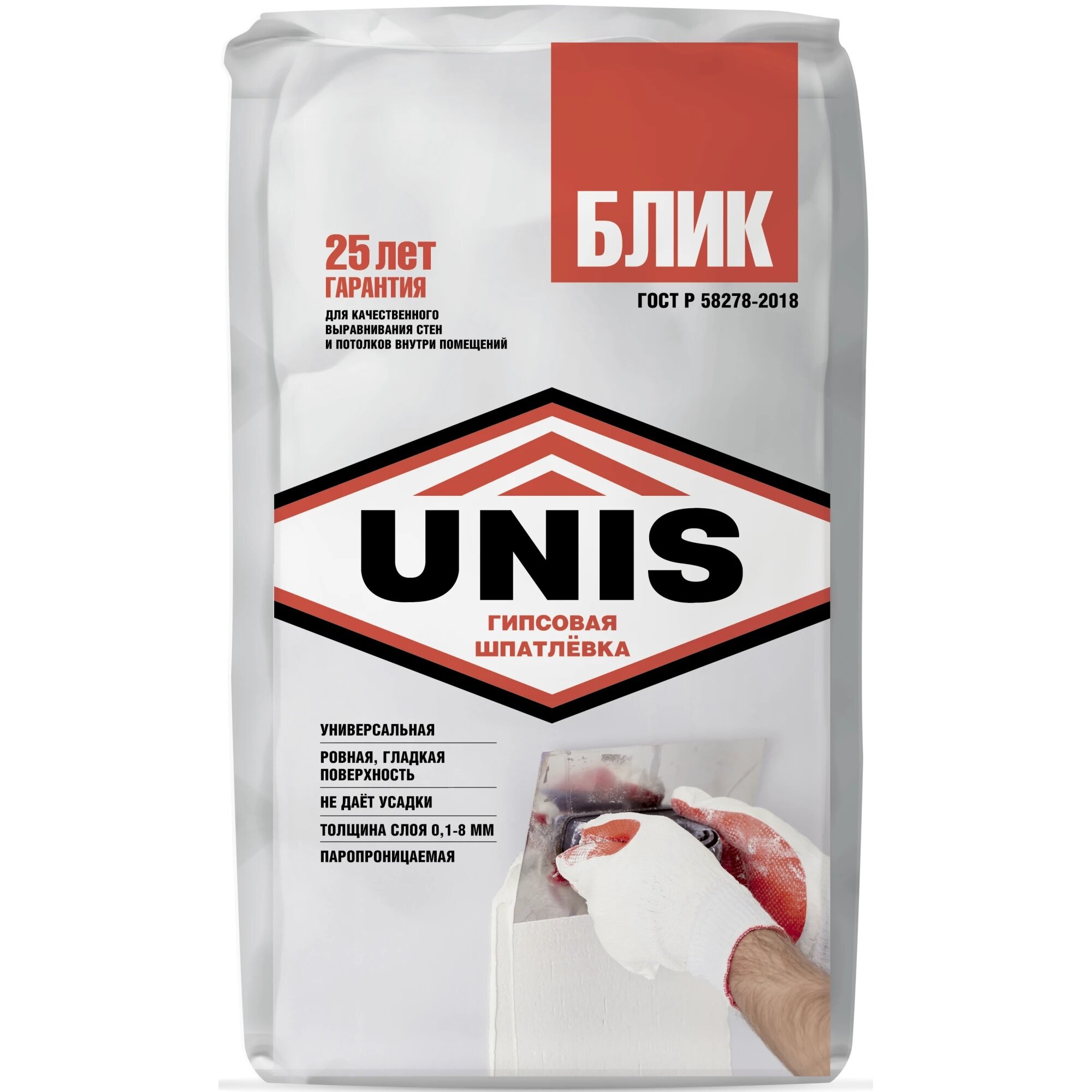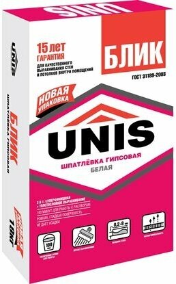 Шпатлевка гипсовая UNIS Блик 18кг, арт.BLIK-18 интересное: