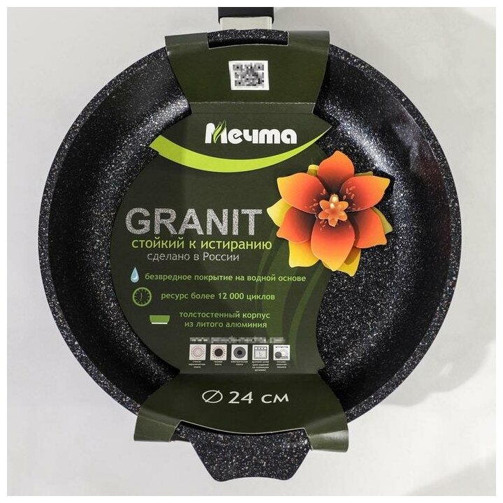 Сковорода алюминиевая 24 см Мечта "Гранит" black с антипригарным покрытием, индукция