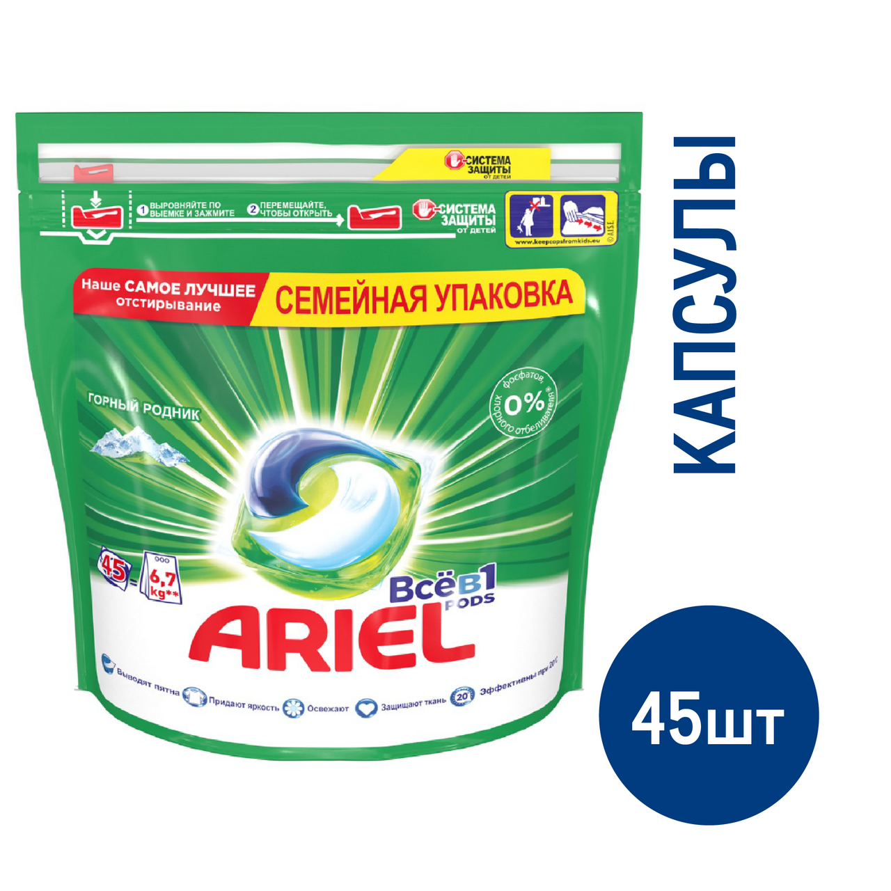 Капсулы для стирки Ariel Всё-в-1 Г Горный Родник, 45 шт. - Procter and Gamble