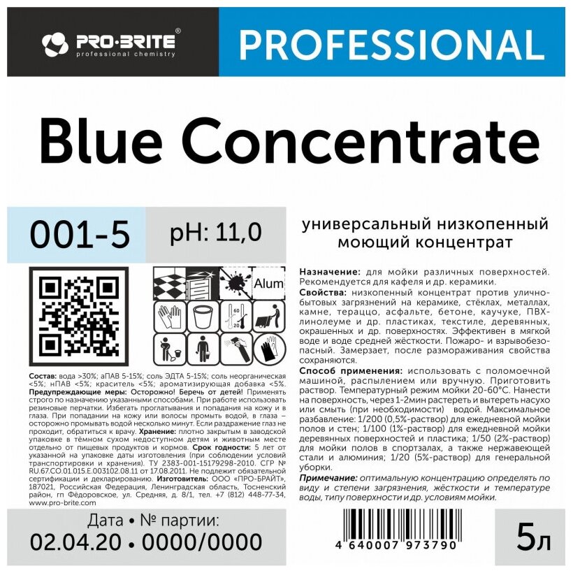 Универсальный низкопенный моющий концентрат 001-5 Blue Concentrate 5л Pro-Brite