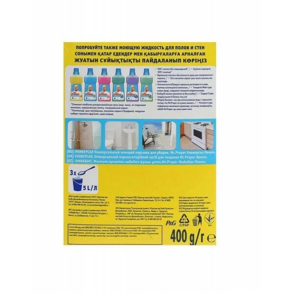 Универсальное чистящее средство Чистящее средство 400 г, MR.PROPER (Мистер Пропер) "Лимон", универсал, порошок