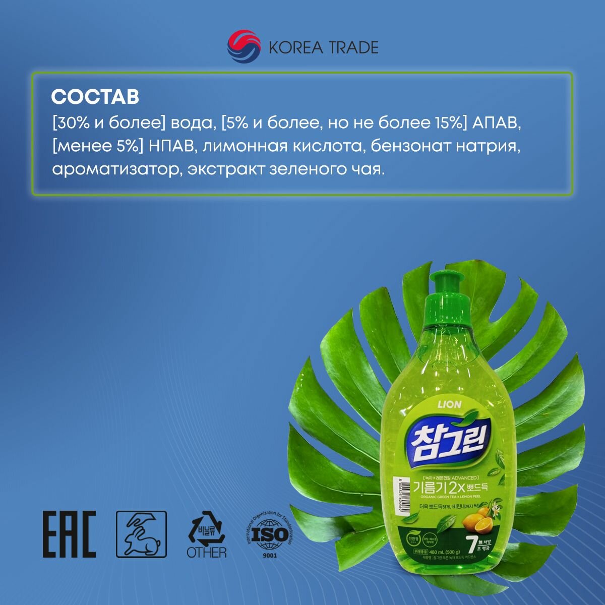 Lion Жидкость для мытья посуды Chamgreen Зелёный чай, 0.5 кг