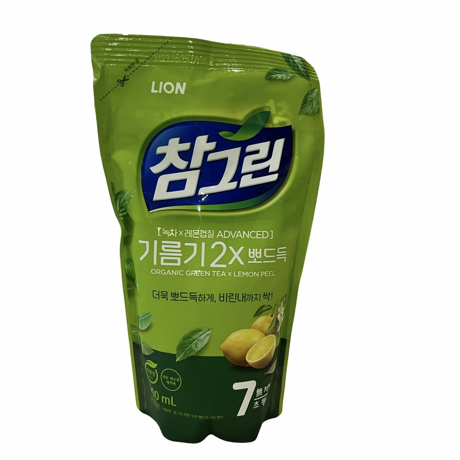 Жидкость для мытья посуды с ароматом зеленого чая Lion Chamgreen 800g refill